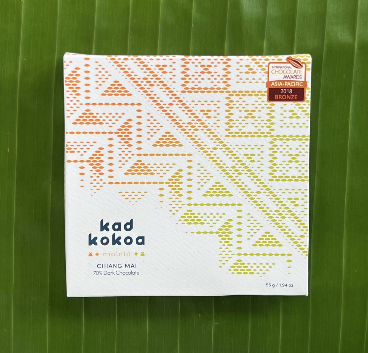 Kad Kokoa sources cacao beans that are of single provincial origins. It supports the collective and farmers for bean grading, fermenting and drying to ensure it brings out the complex flavors and aroma of Thai chocolate. Its taste and quality are guaranteed by the International Chocolate Award 2018 and 2019, and by AVPA Paris awards 2020.
